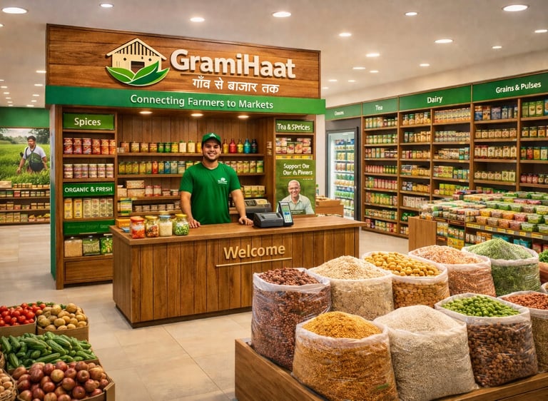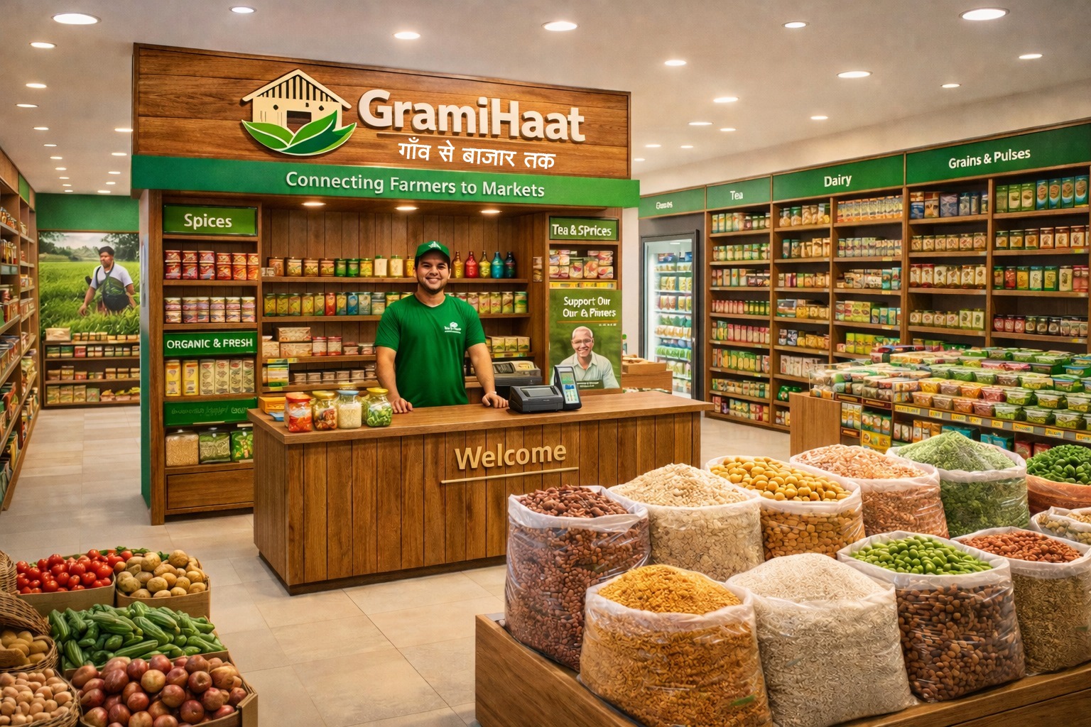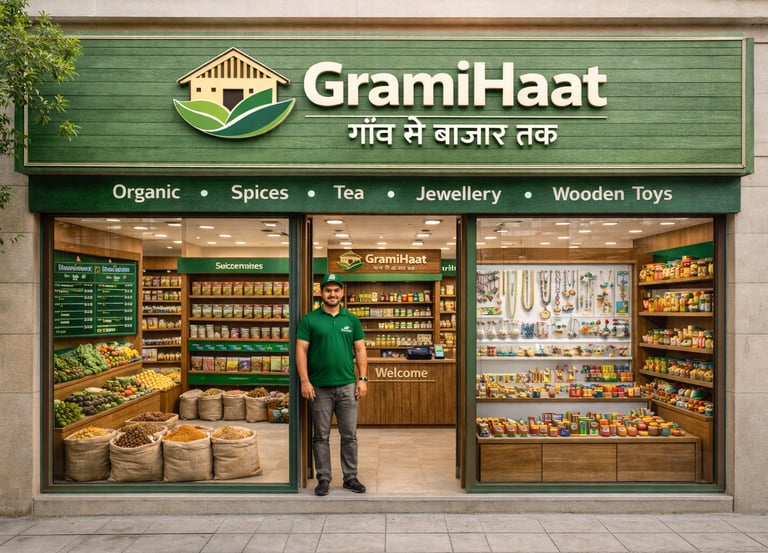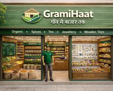 GramiHaat provides branding, layout, training, and supply support.Standardized Retail Shop Setup